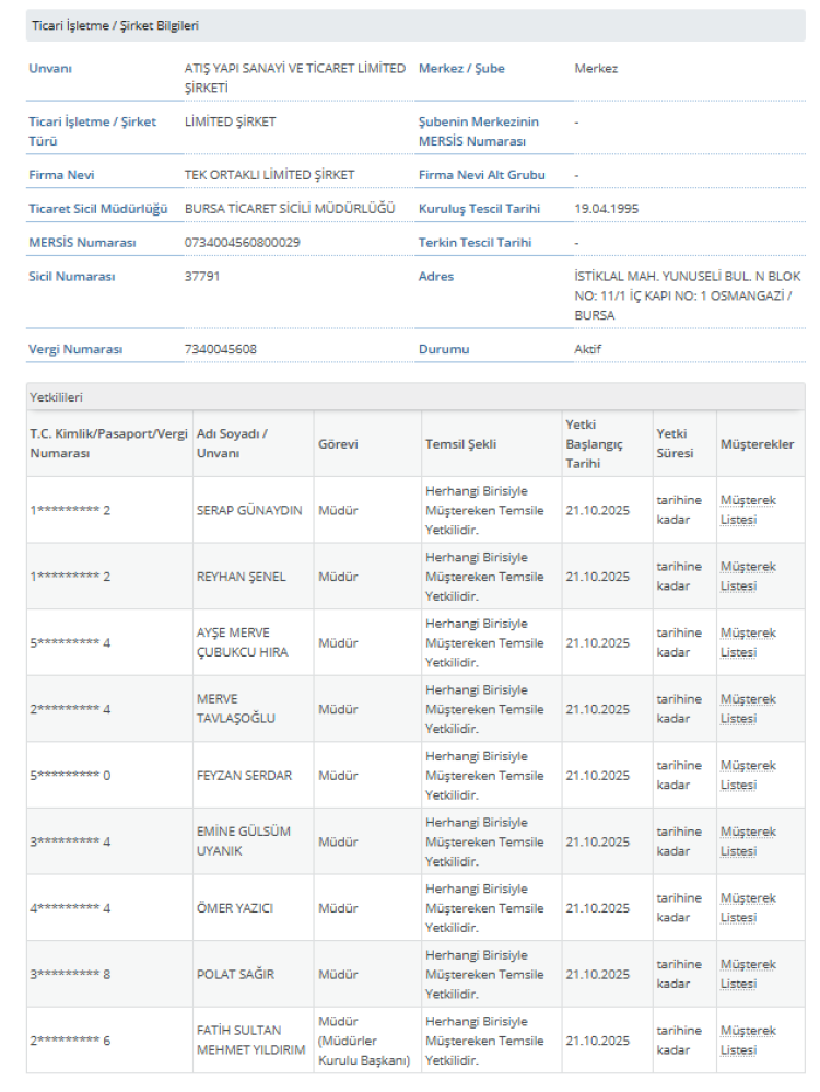 Tasarruf Mevduatı Sigorta Fonu (TMSF), Bursa'nın inşaat devi Atış Yapı Sanayi ve Ticaret Limited Şirketi ile Atışgayrimenkul Pazarlama Limited Şirketi'ne atanan müdürlerin görevine son verdi.