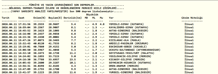 AFAD ve Kandilli Rasathanesi, Kütahya'nın Sima ilçesinde 4,8 büyüklüğünde deprem olduğunu duyurdu.