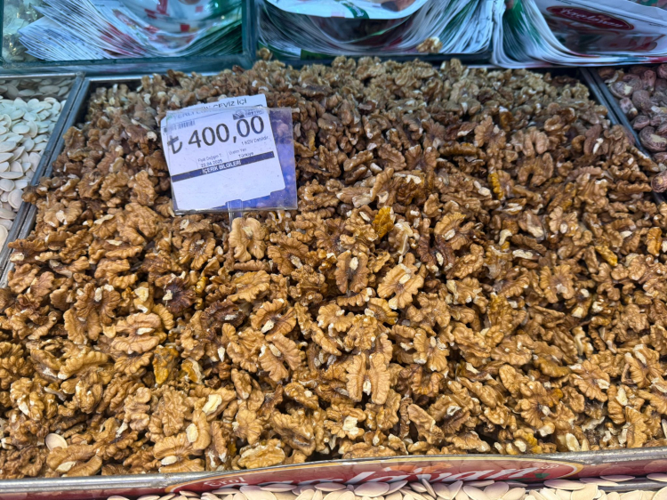Baklava türü tatlıların bayramda daha çok yapıldığını söyleyen Yılmaz özellikle cevize talebin attığını açıkladı. Yılmaz,”Baklavalık ceviz 400 yüz lira. Biraz daha iyisi 500 lira. Fındık yandığı için bu sene çok pahalı. Fındık satıyorum ama bugün bin liraya yaklaşmıştı ama 880 lira civarında satıyoruz” dedi.
