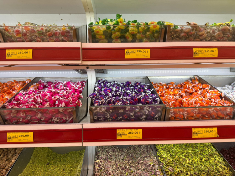 Bayram şekerleri hakkında ortalama bir fiyat bandı açıklayan Yıldırım, “Fiyatlar geçen bayramdan beri değişmedi. Ortalama 200-250 lira civarında şeker fiyatlarımız. Genelde çocuklar tüketiyor şekeri. Biz de iyisini satmaya çalışıyoruz. Yani orta kalite 200 TL civarında şeker. Meyveli, lokumcuk dediğimiz yumuşak şekerler var çocukların biraz daha çok sevdikleri onları satıyoruz genelde” dedi.