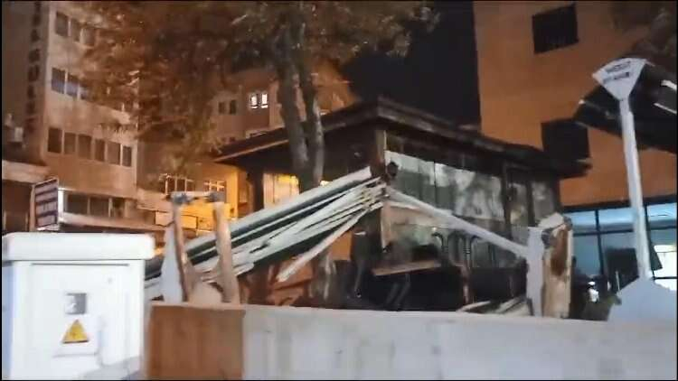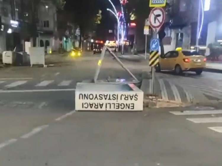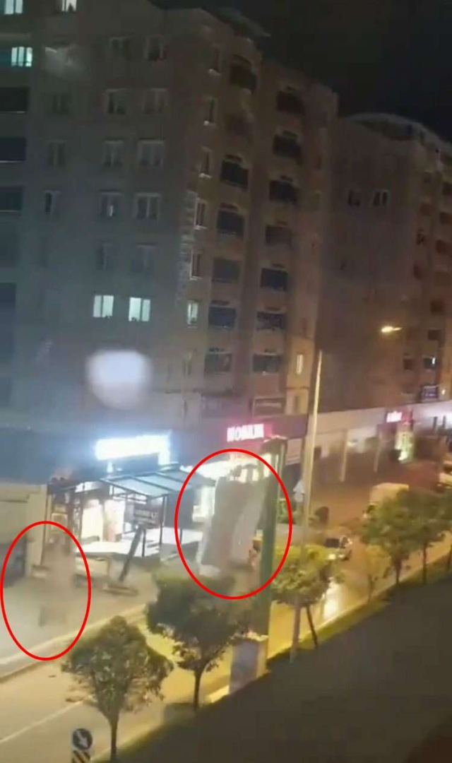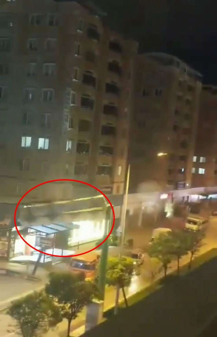 Bölgede bulunan bir vatandaşın cep telefonu ile kaydettiği olay sırasında savrulan parçalar nedeniyle yol kısmen ulaşıma kapandı.