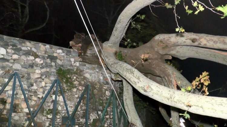 Yine Osmangazi ilçesindeki Tophane Meydanın bulunan çınar ağacı lodosun etkisiyle devrildi. Belediye ekiplerinin çınar ağacını parçalayarak kamyonete yüklemesinin ardından temizlik çalışması yapıldı.