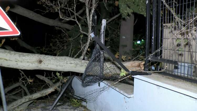 İlçeye bağlı Kale Mahallesi Cuma Caddesi üzerinde bulunan akülü tekerlekli sandalyelerin şarj edildiği istasyon devrildi, yerlerinden kopan ağaç dalları yollara savruldu.