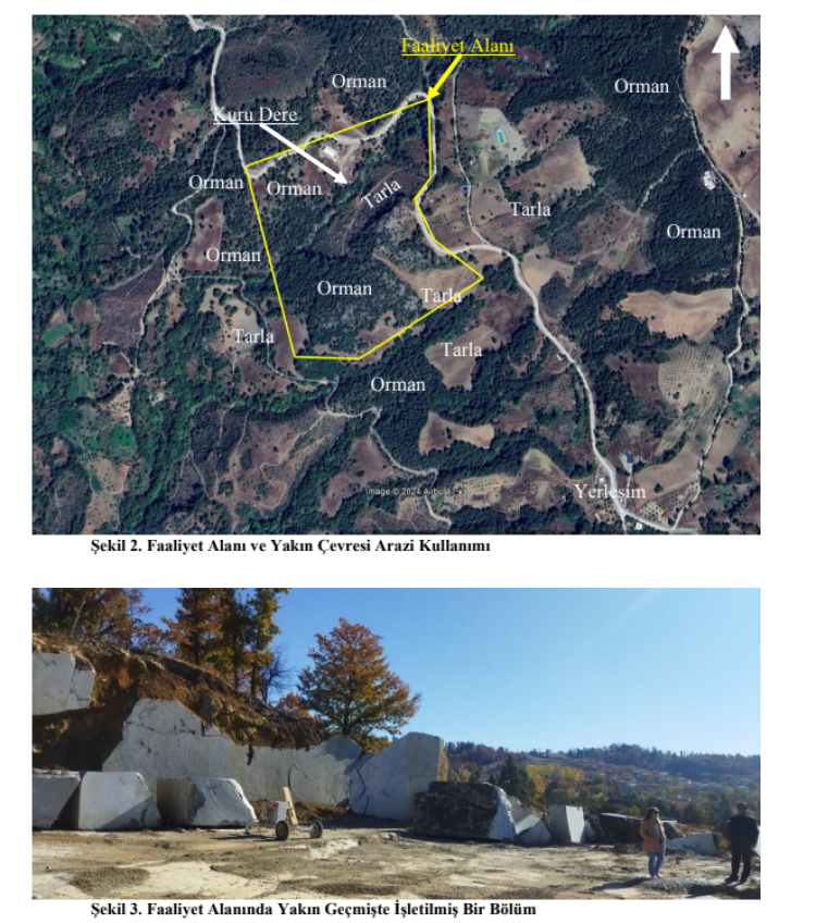 Tanıtım dosyasında; mermer üretiminin gerçekleştirileceği ocak alanının ve pasa depolama alanın orman ve tarla arazisi vasfında olduğu belirtildi.