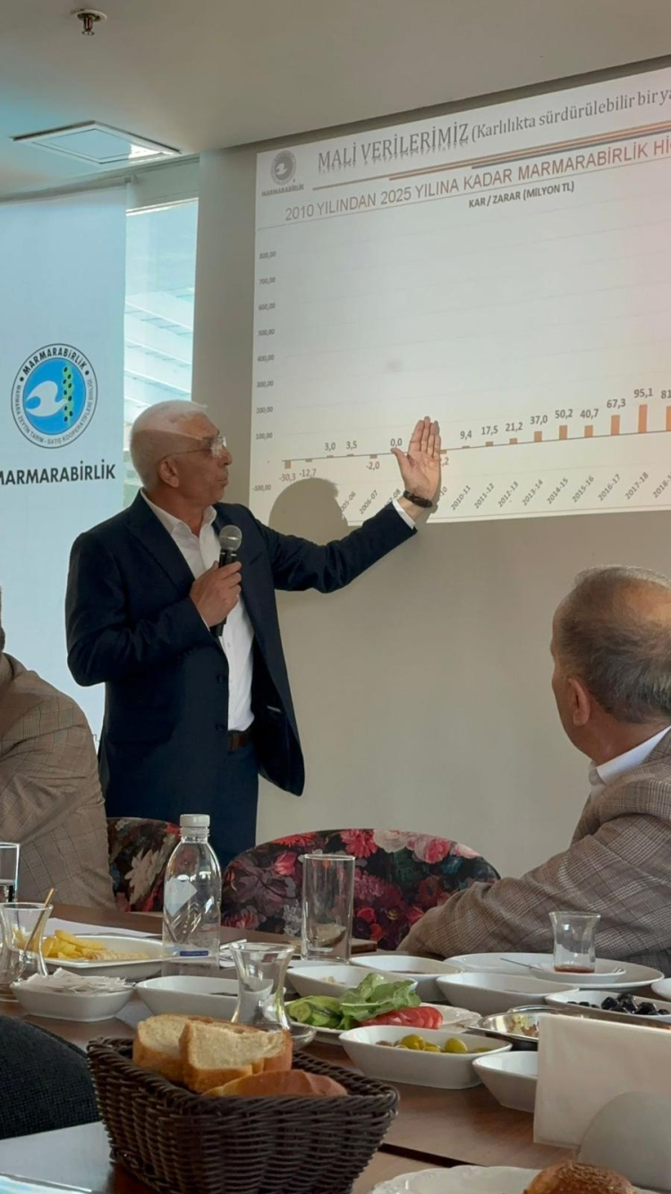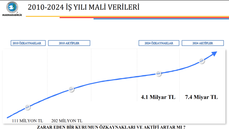 Değerli basın mensupları ; Yürütme Yönetim Kurulu'ndadır ve Yönetim Kuruluda 7 kişiden oluşmaktadır. İcra makamı Genel Müdür ve Birim Müdürlerindedir. Asla tek başına karar alınamaz. Eğer ortada bir yanlış varsa 7 kişi de suçludur. Sanki seçim olmuş ve yönetim değişikliği olmuş gibi “köklü bir değişiklik yapıldı” algısının yaratılması kurumsallığa yakışmamaktadır. Göreve başladığım 2010 yılından 2025 yılına kadar Marmarabirlik hiç zarar etmemiştir. Bu güne kadar olduğu gibi bundan sonra Marmarabirlik'in Kar-Zararını ortaklarımız iyi takip etmelidir. MARMARABİRLİK zarar etmiş olsa Öz Kaynakları erir. Öz kaynaklar 4.1 Milyar TL, Aktifler de 7.4 Milyar TL'ye yükselmiştir.