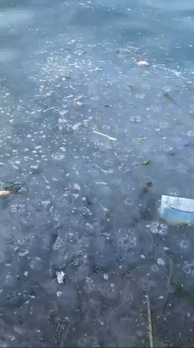 Gemlik Körfezi'ndeki sahil şeridi, büyüklü küçüklü mavi denizanalarıyla doldu.