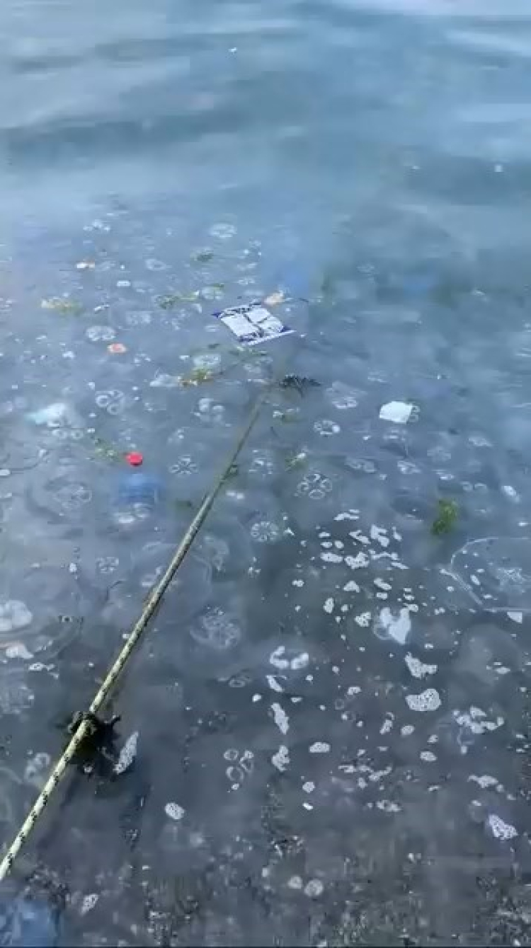 Sahile dökülen atıkların denizanalarına sebebiyet verdiğini iddia eden vatandaşlar, kimsenin zarar görmeden körfezin bir an önce temizlenmesini talep etti.