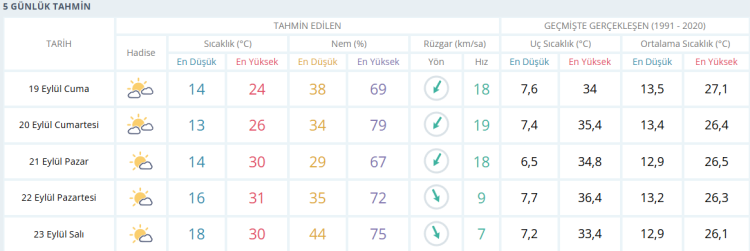 İŞTE BURSA İÇİN 5 GÜNLÜK HAVA DURUMU TAHMİNİ (19 EYLÜL 2025)