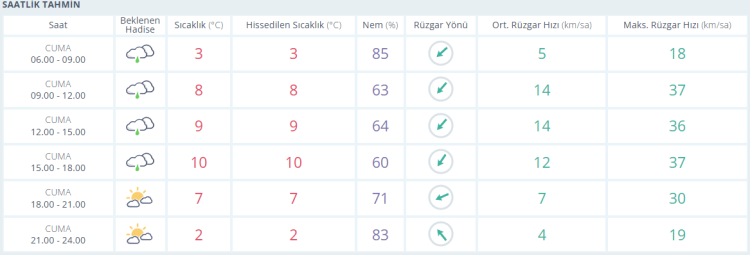 Akşam saatlerine doğru ise termometreler 10 derece ve yağışlı gösteriyor.