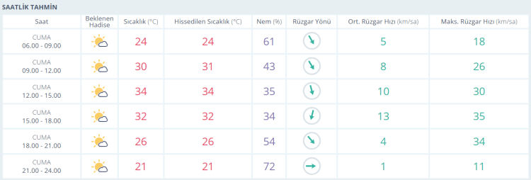 Akşam saatlerine doğru ise termometreler 32 derece ve yine az bulutlu gösteriyor.
