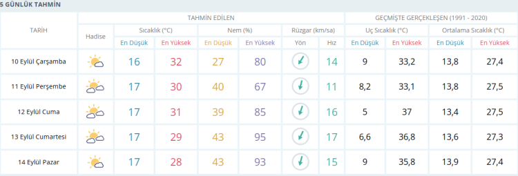 İŞTE BURSA İÇİN 5 GÜNLÜK HAVA DURUMU TAHMİNİ (10 EYLÜL 2025)