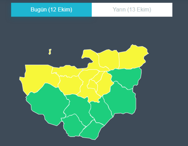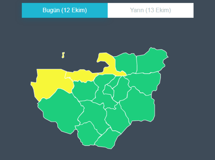 Bursa'nınGemlik, Karacabey ve Mudanya ilçeleri için yapılan sarı uyarı güncellendi.