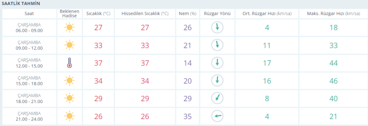 Perşembe: Aşırı sıcak, 37°C, güneşli.
