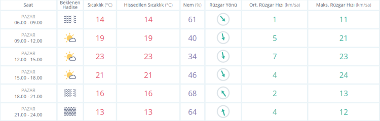 Bugün PAZAR sıcaklık gün içinde en yüksek 23 derece olarak ölçülürken gün içerisinde açık bir hava ile birlikte yer yer sisli ve puslu bir hava etkili oluyor.