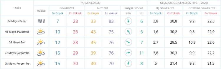 Rapora göre sıcaklıklar 30 dereceye kadar yükselirken güneşli ve açık hava etkili oluyor.