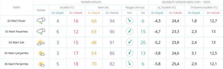 İşte Bursa için 5 günlük hava durumu tahminleri: