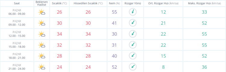 Öğle saatlerine doğru ise sıcaklıklar yükselişe geçerken dereceler 30'u gösteriyor.