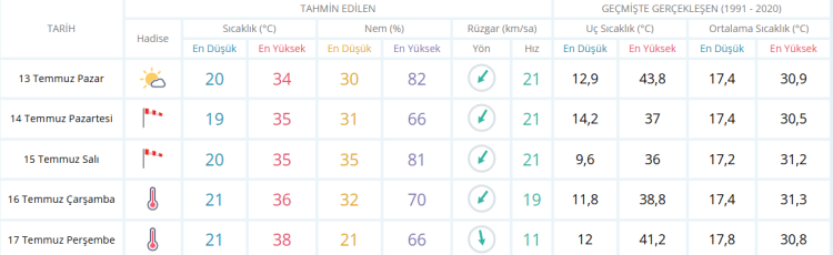 Öte yandan Meteoroloji'nin Bursa için 5 günlük hava tahmin raporunun belli olması ile birlikte yeni haftada Bursalılara 38 derece ile birlikte rüzgar uyarısı geldi.