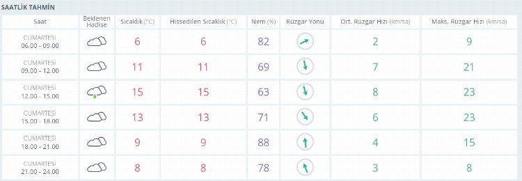 Öğle saatlerine doğru da çok bulutlu gökyüzü ile birlikte termometreler 6 derece seviyelerinde seyrediyor.