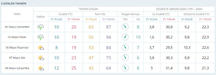 İŞTE BURSA İÇİN 5 GÜNLÜK HAVA DURUMU TAHMİNİ
