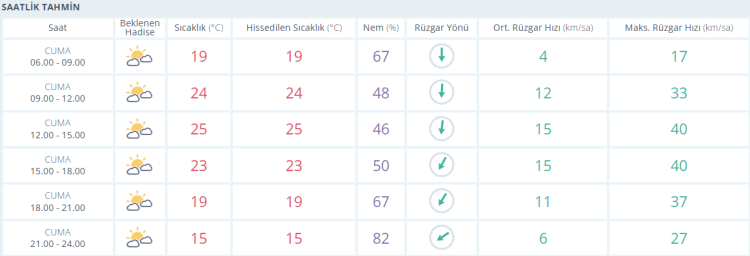 Öğle saatleri sonrası parçalı bulutlu ve şehir genelinde termometreler 25 derece seviyelerinde ölçülüyor.