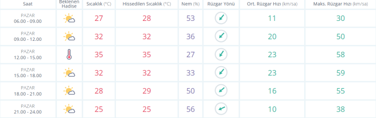 Öğle saatlerine doğru ise sıcaklıklar yükselişe geçerken dereceler 32'yi gösteriyor.