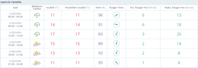 Hava sıcaklıklarının öğle saatlerinde 17 dereceye kadar yükseleceği, akşam saatlerinde 13 dereceye, gece saatlerinde ise 11 dereceye kadar düşeceği tahmin ediliyor.