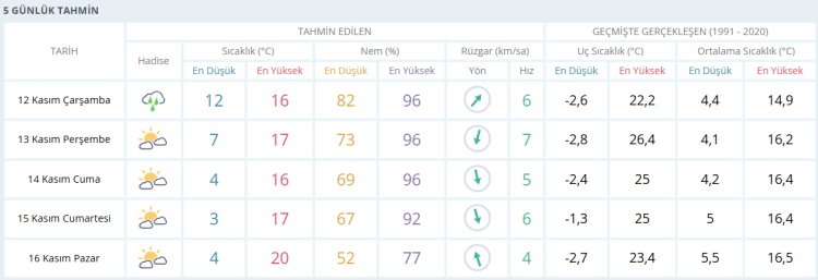 İŞTE BURSA İÇİN 5 GÜNLÜK HAVA DURUMU TAHMİNİ (12 KASIM 2025)