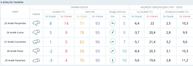 İŞTE BURSA İÇİN 5 GÜNLÜK HAVA DURUMU TAHMİNİ (25 ARALIK 2025)