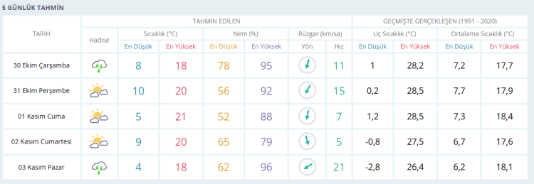 PERŞEMBE parçalı bulutlu ve güneşli 20 derece CUMA parçalı bulutlu ve güneşli 21 derece CUMARTESİ parçalı bulutlu ve güneşli20 derece PAZAR sağanak yağışlı 18 derece olacak.
