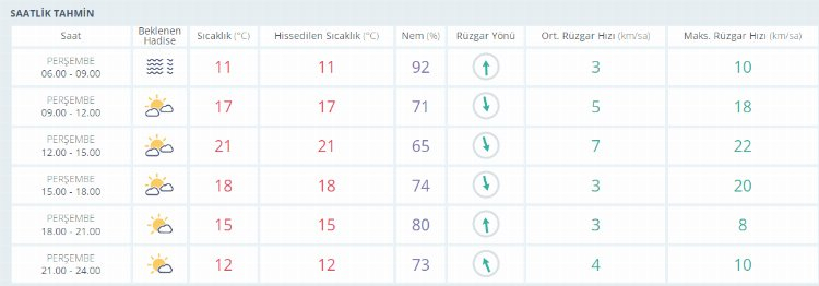 İŞTE BURSA İÇİN SAATLİK HAVA DURUMU TAHMİNİ (19 EKİM 2023)