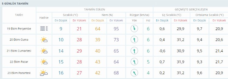 Bursa’da hava durumu nasıl? Meteoroloji Bursa için 19 Ekim 2023 Perşembe günü hava tahmin raporunu yayınladı. Şehir genelinde bugün en yüksek sıcaklık parçalı bulutlu ve güneşli gökyüzüyle birlikte 21 derece olarak ölçülüyor. Öte yandan termometreler yarından itibaren 7-8 derece seviyelerinde yükselerek hafta sonunda sıcaklık yükselerek girecek. İşte Bursa için 5 günlük hava durumu detayları…