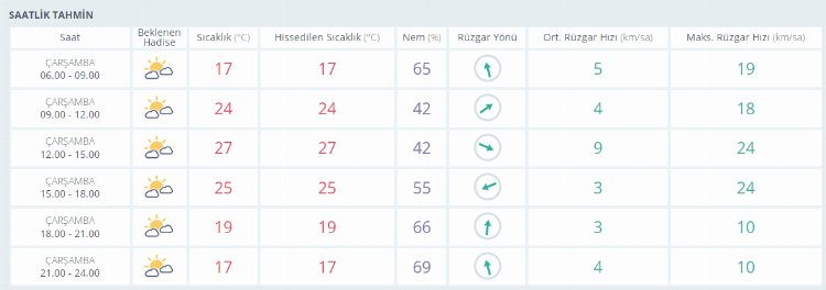 Haftanın son iş gününde (CUMA) sabah saatlerinde 14 derece olarak ölçülürken çok bulutlu gökyüzüyle birlikte termometreler en yüksek 27 dereceyi gösterecek.