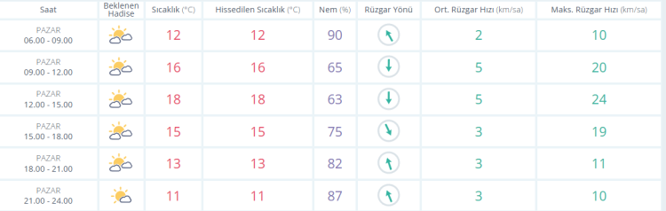 Öğle saatlerinden sonra ise sıcaklıklar 15 dereceye kadar düşerken , akşam saatlerinde ise sıcaklıklarda 11 dereceye kadar düşüş yaşanıyor.