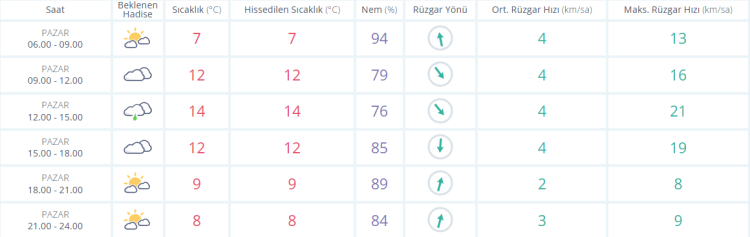 Meteoroloji Genel Müdürlüğü tarafından Bursa için yapılan tahmine göre:
