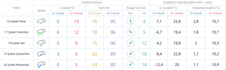 Rapora göre sıcaklıklar 14 dereceye kadar yükselirken yağış ve kar ile birlikte sıcaklıklarında etkili olacağı belirtildi.
