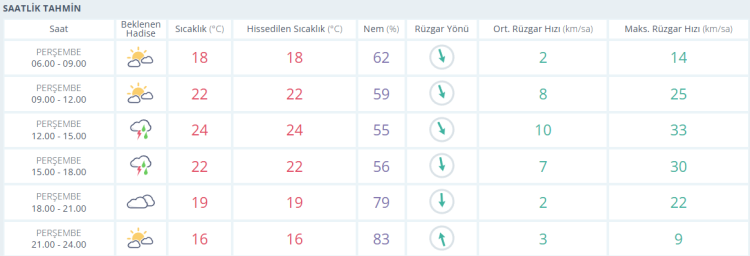 Akşam saatlerine doğru ise termometreler 22 derece ve sağanak yağışlı gösteriyor.