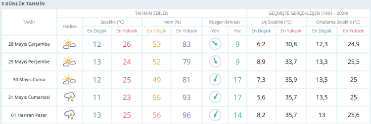 İŞTE BURSA İÇİN 5 GÜNLÜK HAVA DURUMU TAHMİNİ (28 MAYIS 2025)