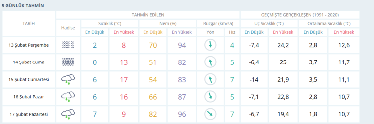 İŞTE BURSA İÇİN 5 GÜNLÜK HAVA DURUMU TAHMİNİ (13 ŞUBAT 2025)