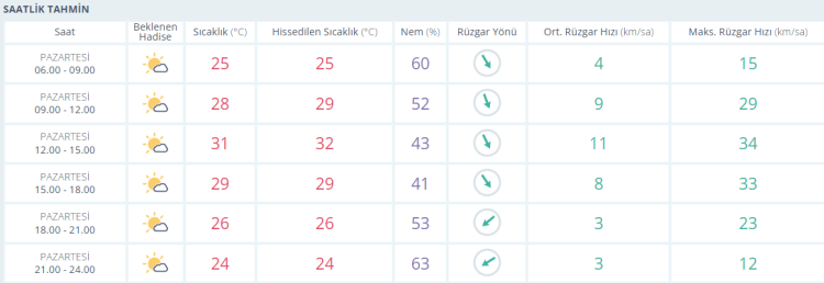 Bursa'da hava sıcaklığı sabah saatlerinde 25 derece olarak ölçüldü. Gün içinde 32 dereceye kadar yükselmesi beklenen sıcaklık, akşam saatlerinde 26 dereceye, gece ise 24 dereceye kadar düşecek.