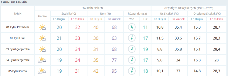 İŞTE BURSA İÇİN 5 GÜNLÜK HAVA DURUMU TAHMİNİ (1 EYLÜL 2025)
