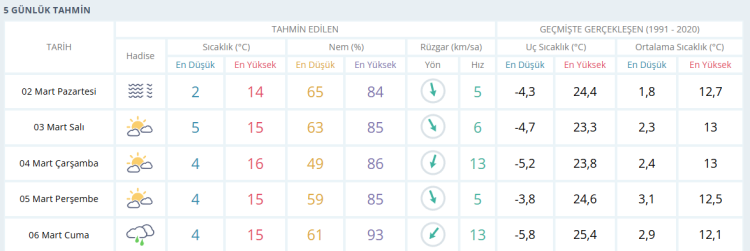 İŞTE BURSA İÇİN 5 GÜNLÜK HAVA DURUMU TAHMİNİ (2 MART 2026)
