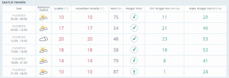 Haftanın ikinci gününde (YARIN) sıcaklık sabah saatlerinde 6 derece seviyelerinde ölçülüyor. Gün içerisinde termometreler parçalı bulutlu ve güneşli gökyüzüyle birlikte sıcaklık 22 derece seviyelerinde seyrediyor.