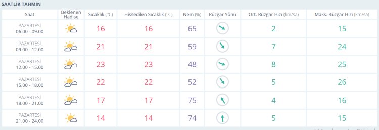 Öğle saatleri sonrası parçalı bulutlu ve şehir genelinde termometreler 23 derece seviyelerinde ölçülüyor.