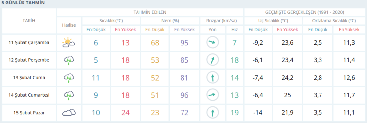 İŞTE BURSA İÇİN 5 GÜNLÜK HAVA DURUMU TAHMİNİ (11 ŞUBAT 2025)