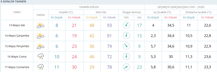 İŞTE BURSA İÇİN 5 GÜNLÜK HAVA DURUMU TAHMİNİ (13 MAYIS 2025)