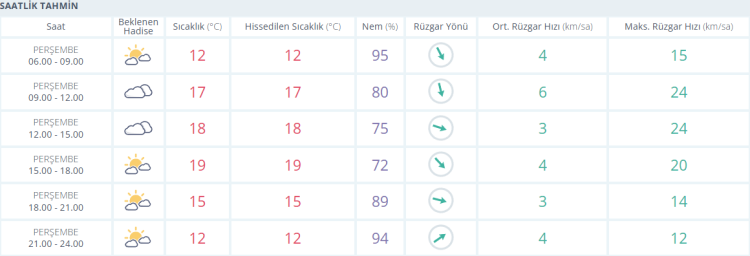 Akşam saatlerinde termometreler 15 derece seviyelerinde ve parçalı bulutlu gösterirken gece saatlerinde ise 12 derece seviyelerinde ölçülüyor.