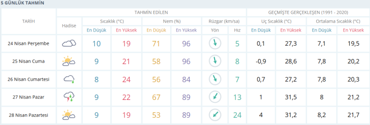 İŞTE BURSA İÇİN 5 GÜNLÜK HAVA DURUMU TAHMİNİ (24 NİSAN 2025)