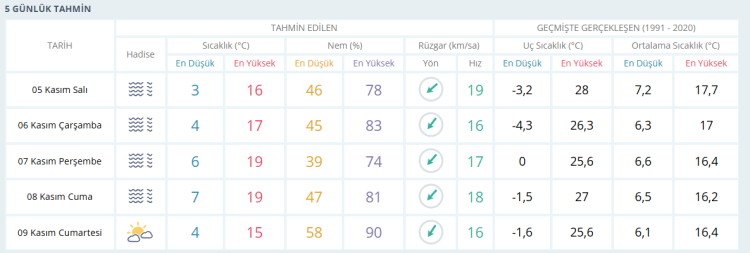 ÇARŞAMBA parçalı bulutlu ve güneşli17 derece PERŞEMBE az bulutlu ve güneşli 18 derece CUMA parçalı bulutlu ve güneşli 19 derece CUMARTESİ parçalı bulutlu ve güneşli 15 derece olacak.