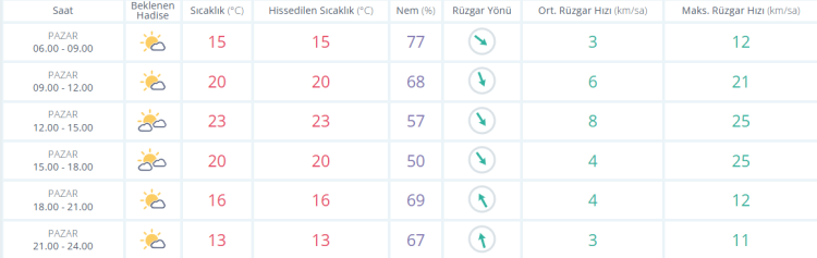 Bugün PAZAR sıcaklık gün içinde en yüksek 24 derece olarak ölçülürken gün içinde açık bir hava etkili oluyor.
